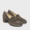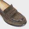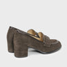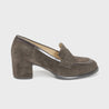L'artigianalità italiana si fonde con il design di tendenza in questo mocassino con tacco quadrato. Realizzato in un morbido camoscio in una raffinata tonalità marrone scuro è perfetto da abbinare con pantaloni sartoriali.
