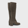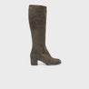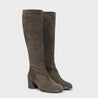This boot, made from dark brown suede, stands out for its slender silhouette. The block heel gives it a bold structure, making the footwear a statement piece, perfect for facing the colder season in style.
