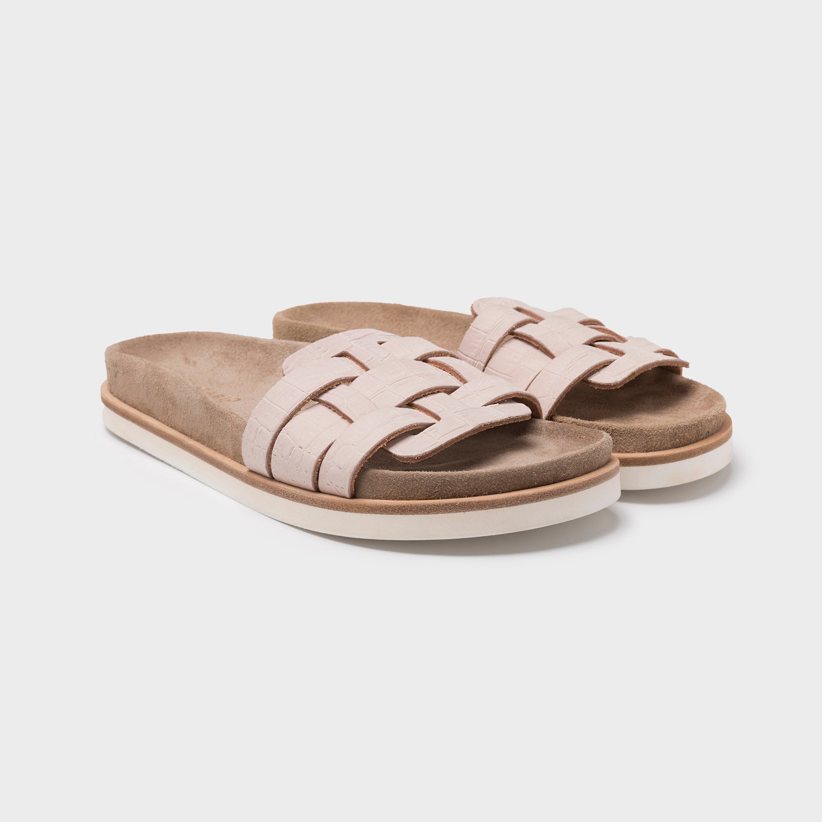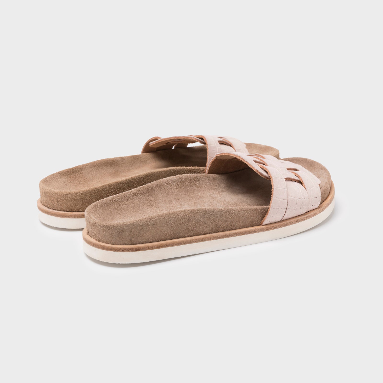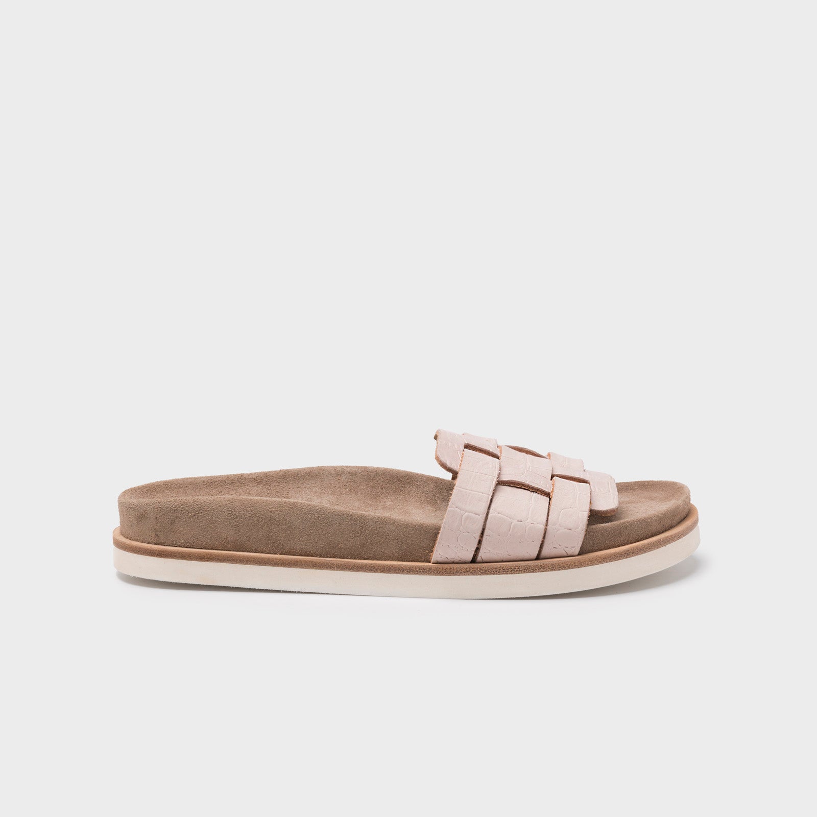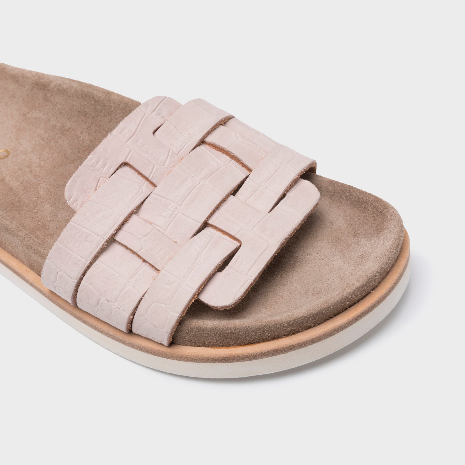 - Footbed wrapped in natural split leather.